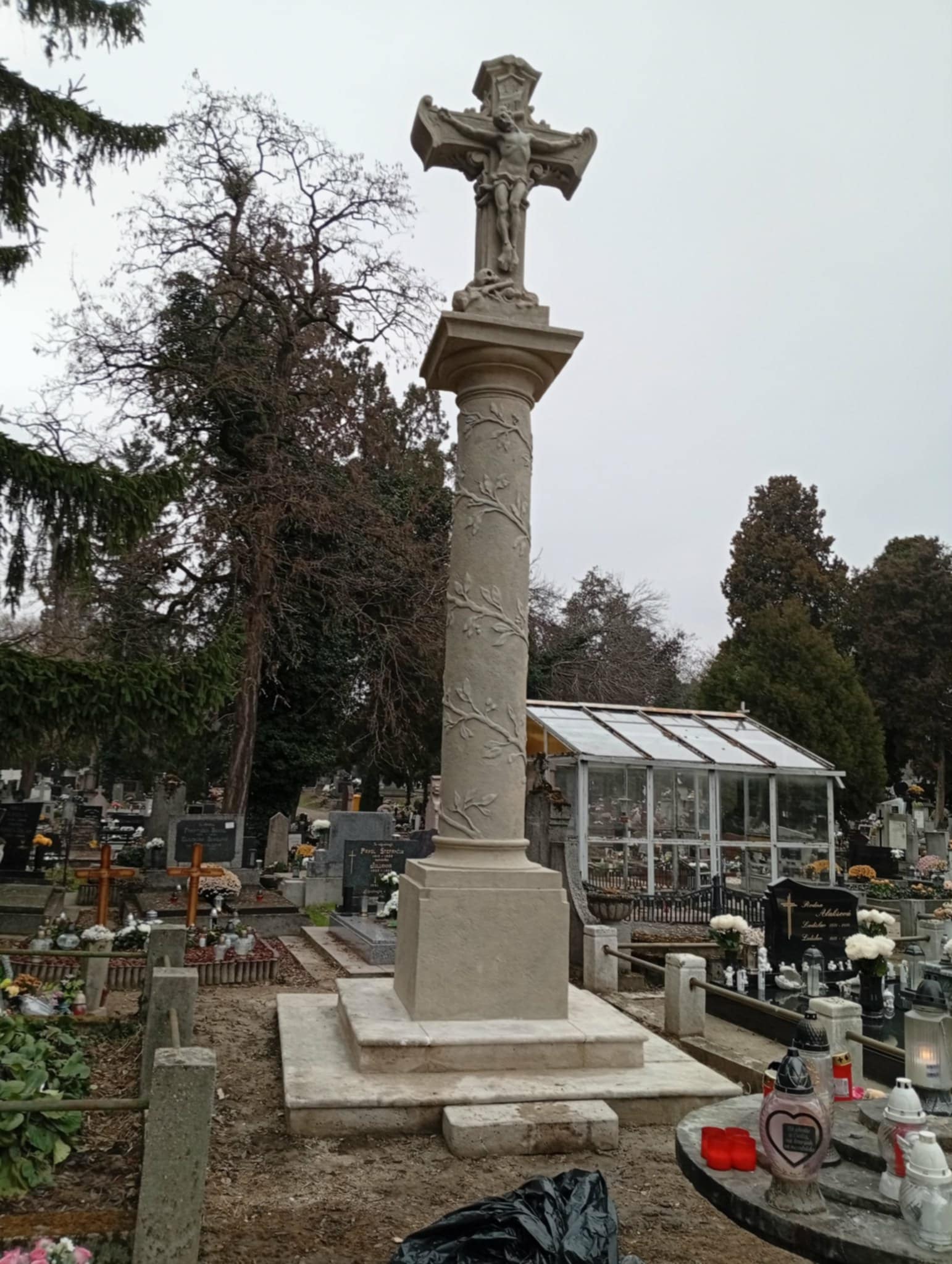 Befejeződött a komáromi katolikus temető késő barokk központi keresztjének restaurálása. A 18. század végéről, 1785-ből származó kőemlék Komárom egyik jelentős műemléke, amely gazdag szobrászati és építészeti kialakításával a késő barokk és rokokó stílusjegyeit hordozza.