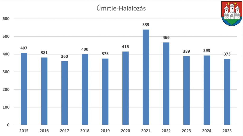 Počet úmrtí v Komárne nevykazuje výrazné výkyvy. Výraznejší nárast bol zaznamenaný iba počas obdobia pandémie Covid-19, odvtedy možno hovoriť o relatívne stabilných číslach.