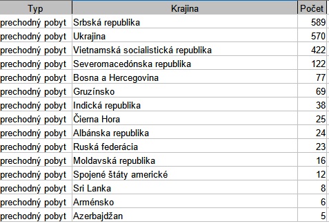 Prechodným pobytom disponuje 2 077 cudzích štátnych príslušníkov. Najväčšie skupiny medzi nimi tvoria občania Srbska, Ukrajiny a Vietnamu. Celkovo ide o osoby pochádzajúce zo 43 krajín sveta.